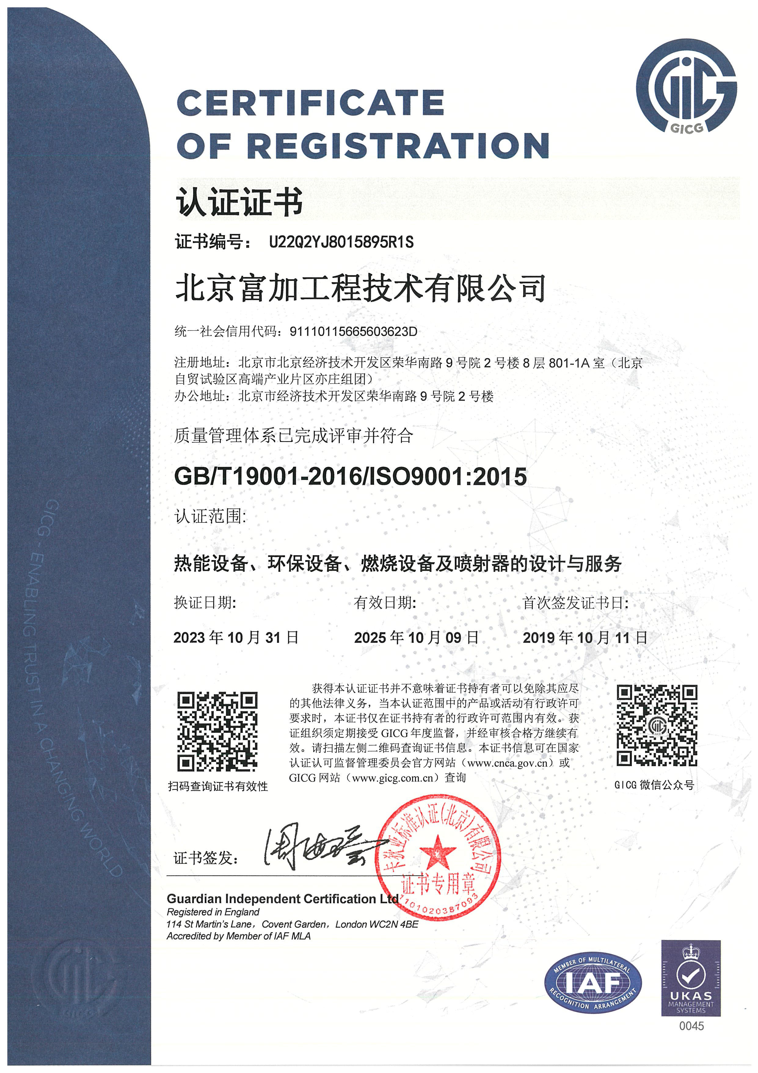 北京富加工程技术有限公司创建于2007年,公司主要从事石油、石化、煤化工、电力、冶金、纺织、医药、农药等领域节能环保设备、燃烧设备、热能设备及流体控制设备的研发、设计、制造、销售服务;公司主要产品有加热炉、焚烧炉、工业火炬、燃烧器、喷射器、压力容器、特种阀门等,公司能提供火炬系统、余热回收系统、焚烧系统的工程总包及EPC服务。公司组织机构健全,现有从业人员150余人,其中工程技术人员占40%,生产工人占50%,管理人员占10%。是中石化、中石油、神华集团等诸多企业的合格供应商。