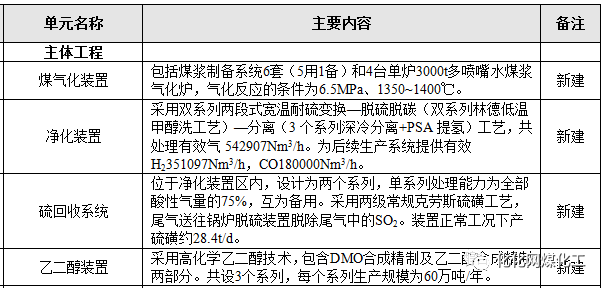 建设内容:包括水煤浆制合成气装置、净化装置、H2/CO分离装置、草酸二甲酯装置、乙二薛装置等。公用工程及配套辅助