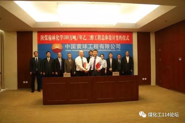 4月20日,陕煤集团榆林化学有限责任公司煤炭分质利用制化工新材料示范项目总体设计签字仪式在中国寰球工程有限公司举行。陕煤集团榆林化学有限责任公司执行董事宋世杰、中国寰球工程有限公司总经理张加珍分别在签约书上签字。最后,陕煤集团榆林化学有限责任公司总经理张小军发布总体设计开工令。 陕煤集团榆林煤炭分质利用制化工新材料示范项目将分为两期进行建设:一期工程分为两个阶段,一阶段为180万吨/年乙二醇工程,总投资219亿,2021年6月底前建成投产;二阶段为200万吨/年烯烃工程,包括560万吨/年甲醇、200万吨/年甲醇制烯烃及下游聚乙烯、聚丙烯、丁二烯、丙烯酸及酯等下游深加工装置,总投资约 500亿。工程拟于2019年具备开工条件, 2023年底前建成投产。二期工程为煤热解及煤焦油深加工工程,包括1500万吨/年中低温热解、240万吨煤焦油加氢、116万 吨重整/芳烃联合装置、180万吨PTA、30 万吨苯乙烯、18万吨双酚A及下游聚苯乙烯、聚碳、聚酯等深加工装置,总投资约 303亿。工程拟于2020年底前具备开工条 件,2025年底前建成投产。