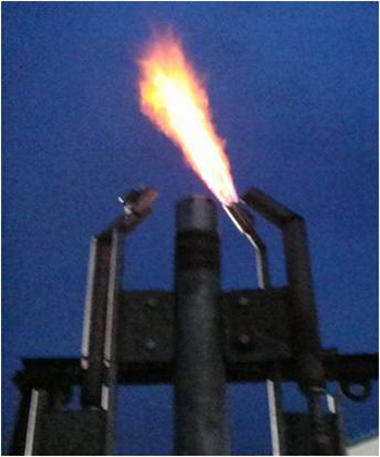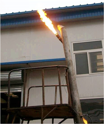 公司开发出的第五代新型长明灯。火焰刚劲,不受恶劣气候的影响,并且高效节能,单支长明灯天然气耗气量约3Nm3/h。