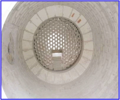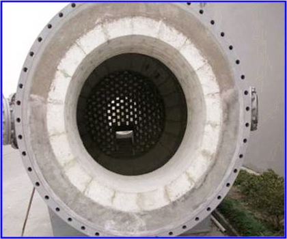 ◆选用材质:普通砖酸性环境下腐蚀严重,所以炉砖选用内砌外浇的形式;迎火面选用Al2O3≥95的刚玉砖,隔热层采用高铝隔热浇注料。